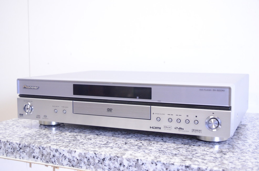 滋賀県高島市のお客様より、宅配買取をご利用いただき、Pioneer/パイオニア SACD/DVD/CDプレイヤー DV-800AVのお買取をさせていただきました。使用感・経年感の少ない、概ね良好な外観のお品で、通電・音出し・基本動作の確認をいたしましたところ問題ございませんでした。本体、元箱、説明書、リモコン、汎用電源ケーブルが揃った状態でしたので、買取価格もUPさせていただきました。オーディオの買取屋さんなら、全国から送料無料、高額査定にてお買取しております。大切にされてきたオーディオのご売却なら、ぜひオーディオの買取屋さんにお任せください!