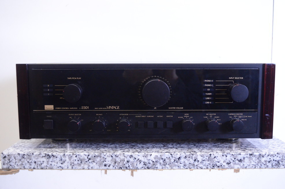 東京都中央区のお客様より、お電話にてお問い合わせいただき、早速お客さまのご都合にあわせてご自宅まで伺い、SANSUI サンスイ C-2301 Vintage プリアンプの査定をさせていただきました。キズ、汚れ等、使用感・経年感の見受けられる外観で、音が出ませんでしたのでジャンク品でしたが、本体のお引取りをさせていただきました。ジャンク品でも高額買取になって、オーディオの買取屋さんに頼んで良かったとおっしゃっていただけました!このたびはオーディオの買取屋さんにご依頼いただき、ありがとうございました!