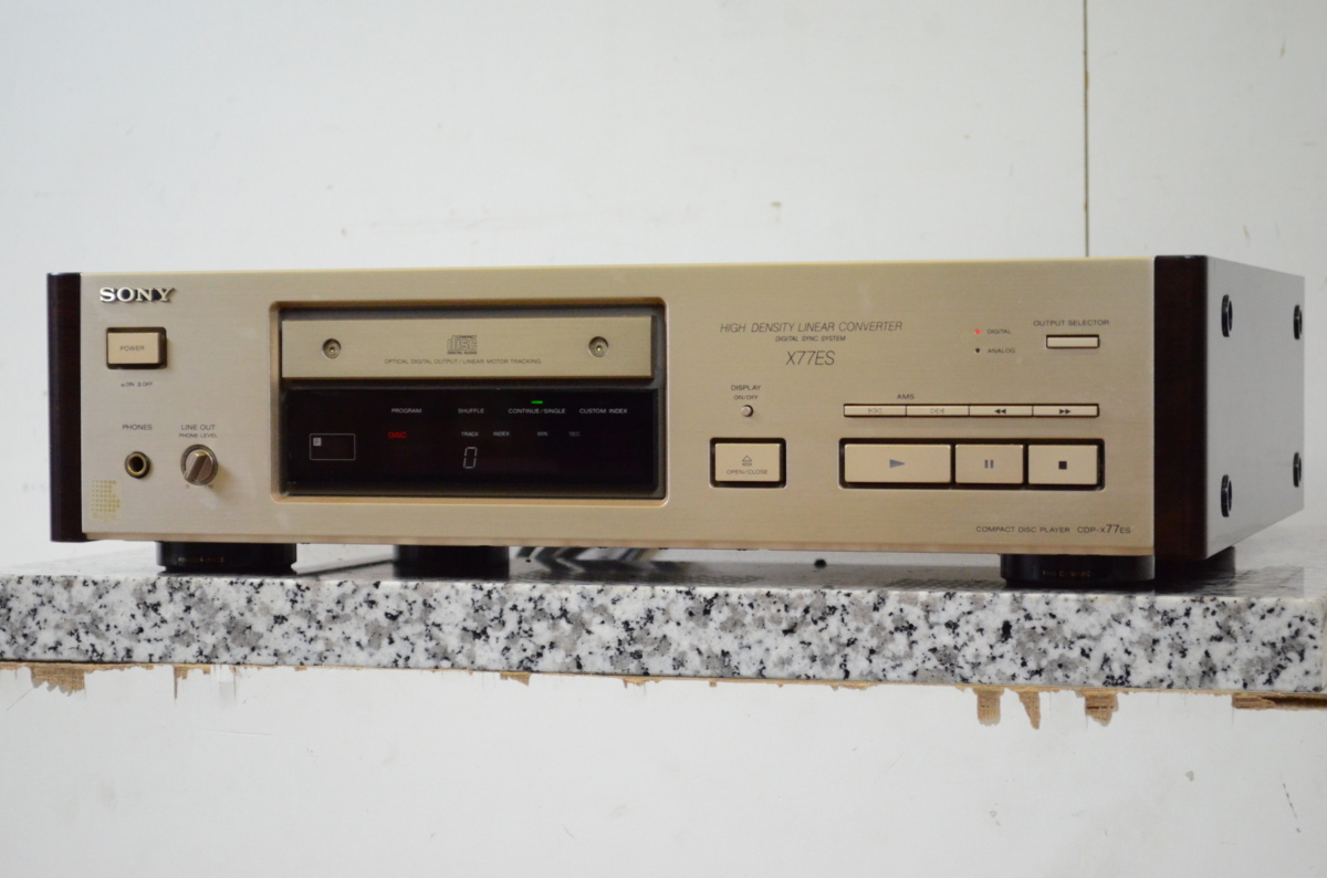 大阪府美原区のお客様より、宅配買取をご利用いただき、SONY ソニー CDP-X77ES CDプレーヤーの査定をさせていただきました。使用感・経年感の見受けられる外観で、通電・音出し・基本動作の確認をいたしましたところ、手動による補助がないとトレイの開閉が出来ない状態でしたが、本体のお引取りをいたしました。オーディオの買取屋さんなら、多少の不具合のあるお品であっても、高額査定にてお買取しております。ご自宅から着払いでお送りいただくだけで査定が完了いたしますので、ぜひオーディオの買取屋さんまでご連絡下さい!