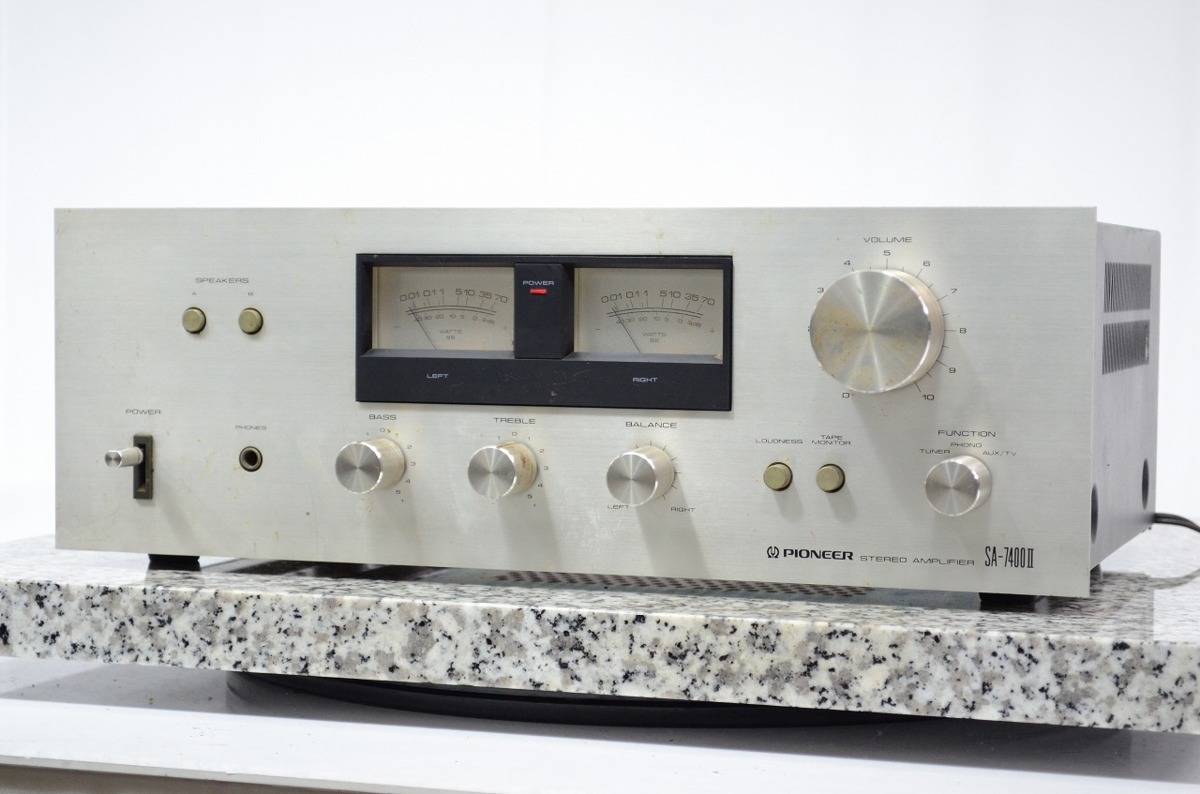埼玉県川越市のお客様より、お電話にてご連絡いただき、早速お客様のスケジュールに合わせてご自宅まで伺い、PIONEER パイオニア SA-7400 II プリメインアンプのお買取をさせていただきました。キズ、汚れ等、使用感・経年感の見受けられる外観で、通電・音出し・基本動作の確認をいたしましたところ大きなガリがありましたが、本体のお引取りをさせていただきました。状態に不安があったとのことでしたが、査定額にも大変ご満足いただけて、オーディオの買取屋さんに任せてよかったとおっしゃっていただけました!この度はオーディオの買取屋さんにご依頼いただき、ありがとうございました!