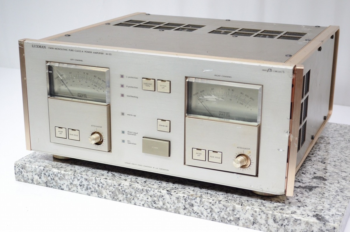 兵庫県淡路市のお客様より、宅配買取をご利用いただき、LUXMAN ラックスマン パワーアンプ M-05の査定をさせていただきました。キズ、汚れ等、使用感・経年感の強く見受けられる外観で、本体が変形しておりましたが、通電・音出し・基本動作確認は問題ございませんでしたので、本体のお引取りをさせていただきました。オーディオの買取屋さんなら、外観に難有りのお品やジャンク品であっても、全国から送料無料、高額査定にてお買取しております!大切にされてきたオーディオのご売却なら、ぜひオーディオの買取屋さんにお任せ下さい!