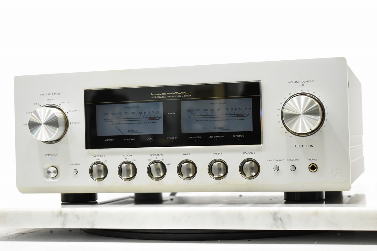 茨城県小美玉市のお客様より、メールフォームよりお問い合わせいただき、宅配買取にてLUXMAN/ラックスマン プリメインアンプ L-507uXのお買取をさせていただきました。3パラレル化した出力段により、ドライブ力を大幅に向上したハイエンドモデルのプリメインアンプです。小キズ等、多少の使用感・経年感の見受けられる外観でしたが、通電・音出し・基本動作確認を致しましたところ問題ございませんでしたので、本体、汎用電源ケーブルでお引き取りをさせていただきました。オーディオの買取屋さんなら、全国から送料無料、高額査定にてお買取りしております。LUXMAN/ラックスマン プリメインアンプ L-507uXのご売却なら、ぜひオーディオの買取屋さんにおまかせください!