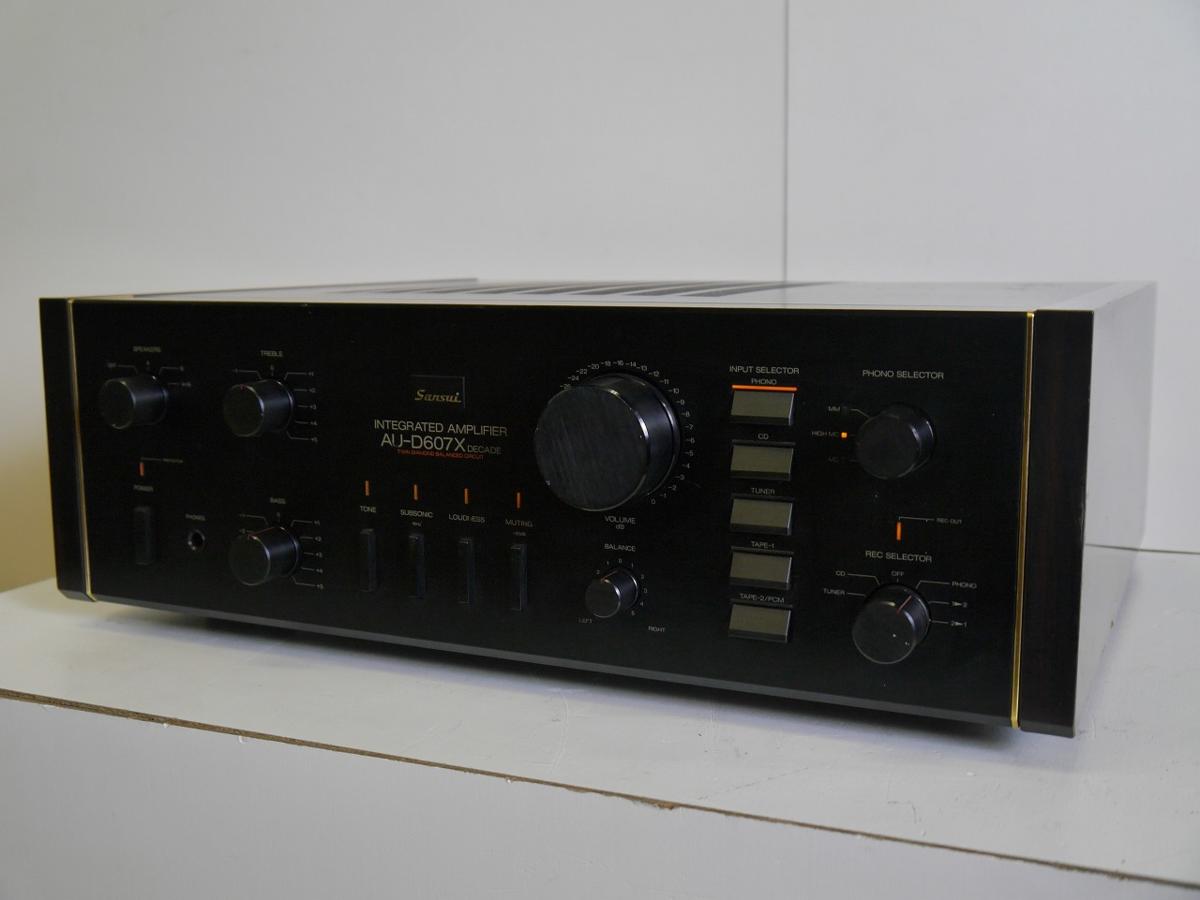 奈良県奈良市のお客様より、宅配買取にてSANSUI サンスイ プリメインアンプ AU-D607X DECADEのお買取をさせていただきました。使用感のある外観で、音出し等の動作確認を致しましたが、全体的にガリが有り、セレクターのCDランプが点灯しない、セレクターPHONOスイッチに引っかかりがある等の難アリのお品でしたが、お引取をいたしました。オーディオの買取屋さんなら、難アリ品や修理が必要なお品であってもしっかりと査定、全国から送料無料にてお買取いたしますので、ぜひご連絡ください!