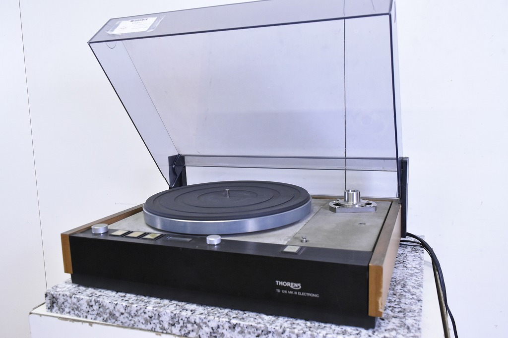 奈良県奈良市のお客様より、宅配買取にてTHORENS トーレンス レコードプレーヤー/ターンテーブル TD126mkIIIのお買取をさせていただきました。使用感・経年感の見受けられる外観で、通電確認を致しましたところ、モーターは回っておりましたがアーム・ベルトが欠品しており動作確認ができない難有り品でしたが、本体のお引取りをいたしました。オーディオの買取屋さんなら、不具合がある場合であっても、しっかりと査定させていただきます。全国から送料無料、高額査定にてお買取りしておりますので、ぜひご連絡下さい!