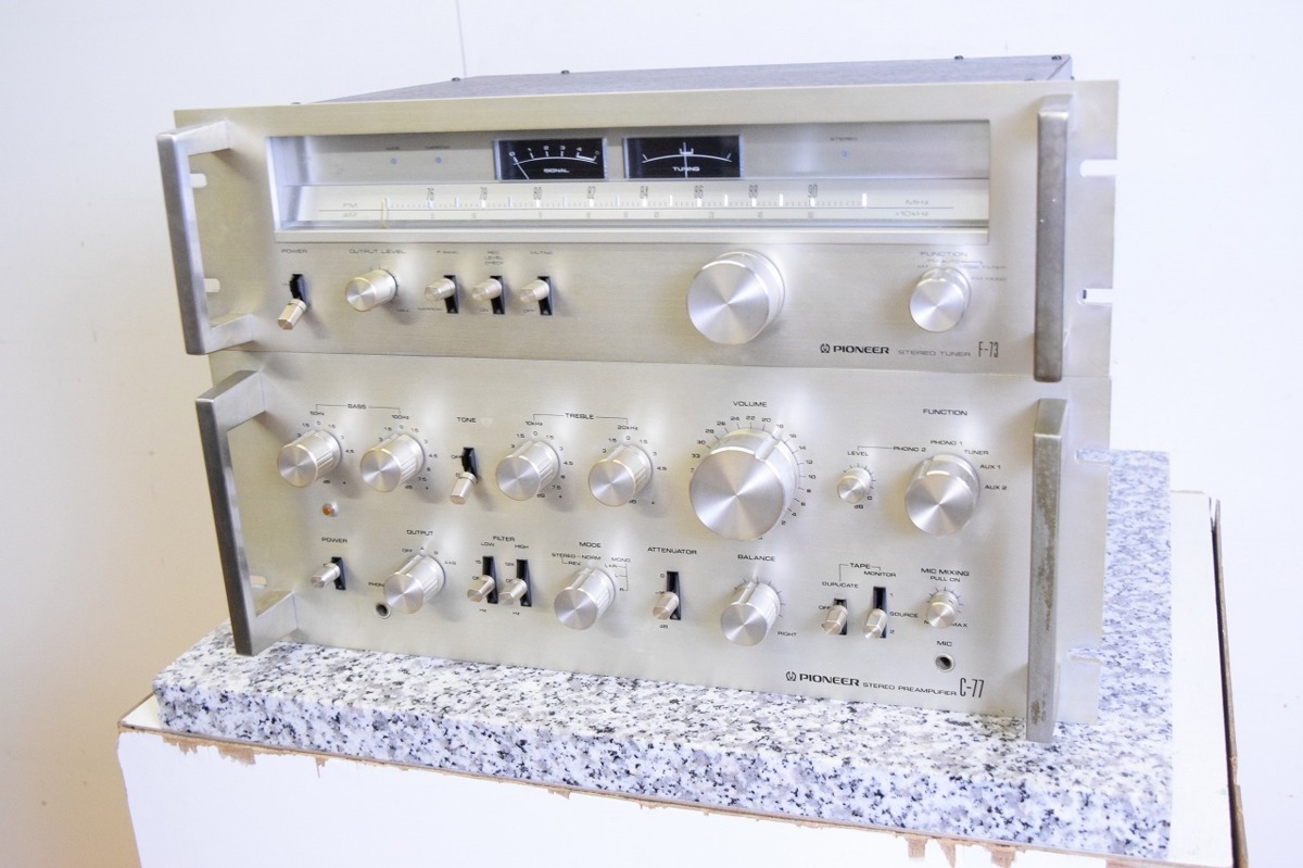 静岡県藤枝市のお客様より、宅配買取にて、PIONEER パイオニア プリメインアンプ C-77 チューナー F-73のお買取をさせていただきました。使用感・経年感の見受けられる外観で、C-77・電源ランプが点灯しない状態でしたが、通電・音出し・基本動作の確認はできましたので、本体のお引取りをさせていただきました。オーディオの買取屋さんなら、全国から送料無料、高額査定にてお買取しております。PIONEER パイオニア プリメインアンプ C-77 チューナー F-73のご売却をご検討中のお客様がいらっしゃいましたら、ぜひオーディオの買取屋さんにお任せください!